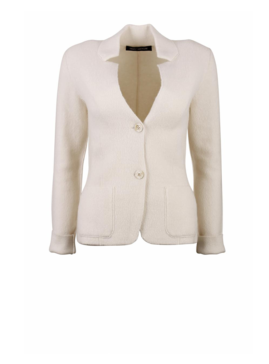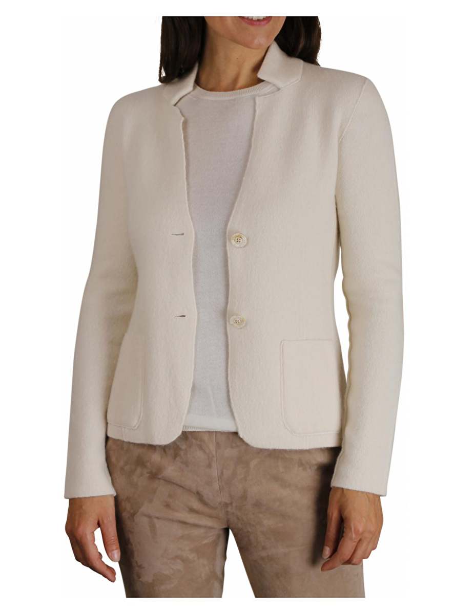 Prachtig offwhite vest. Het model is heel fijn afgewerkt in 100% zacht cashmere. Aan de voorkant zitten twee pocket zakken, het vest sluit met twee knopen en is licht getaïlleerd. De mouw kan omgeslagen gedragen worden.