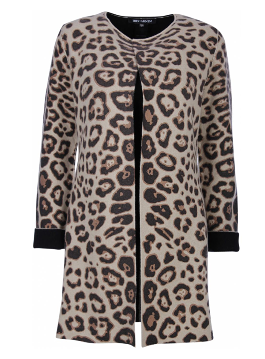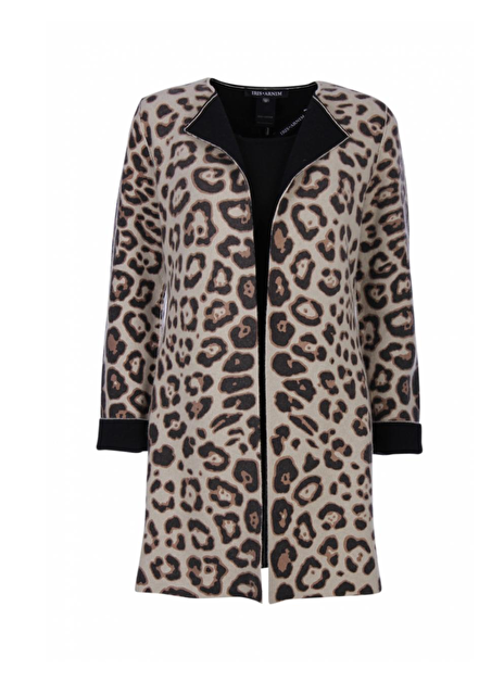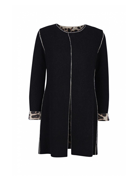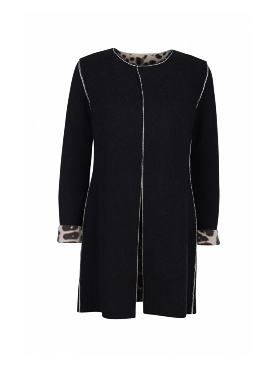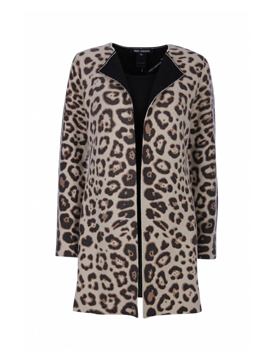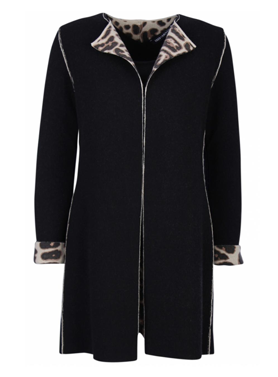 Dit vest is gemaakt van 100% cashmere en reversible. De ene kant is zwart met een lichte bies op de naden en de andere kant is in jaguar print zwart met beige. Een beauty!