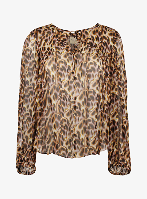 • Detail: ronde hals met v , knoopje & strikje - ballonmouwen met elastisch manchet - afgeronde onderkant zoom.