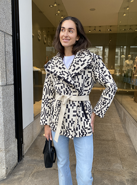 Faith jas stof zwart beige dessin