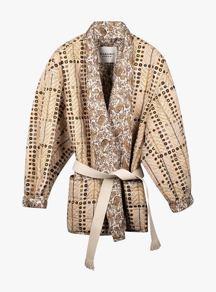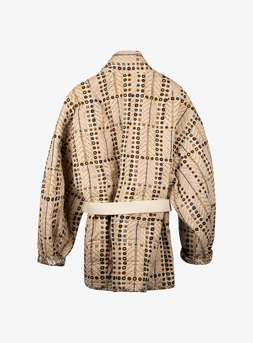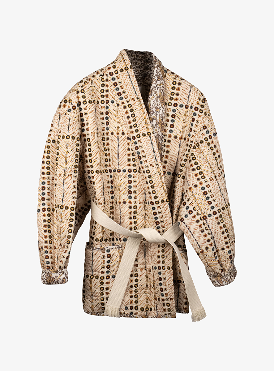 Jasje Chancel offwhite met kleuren dessin en los ceintuur