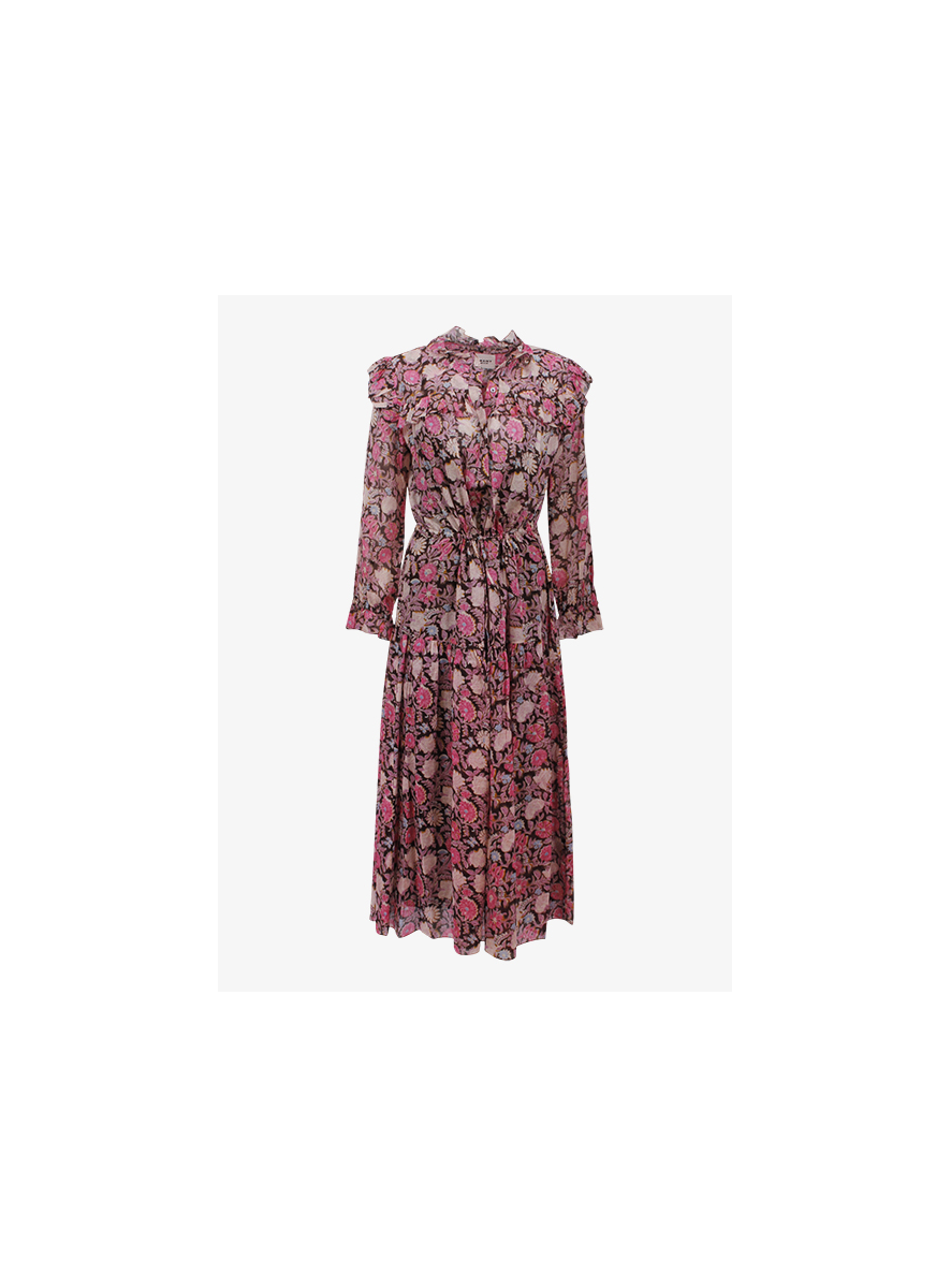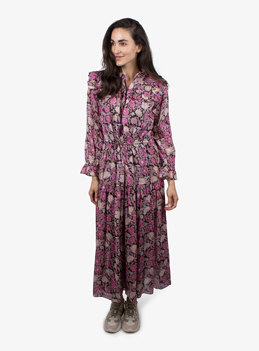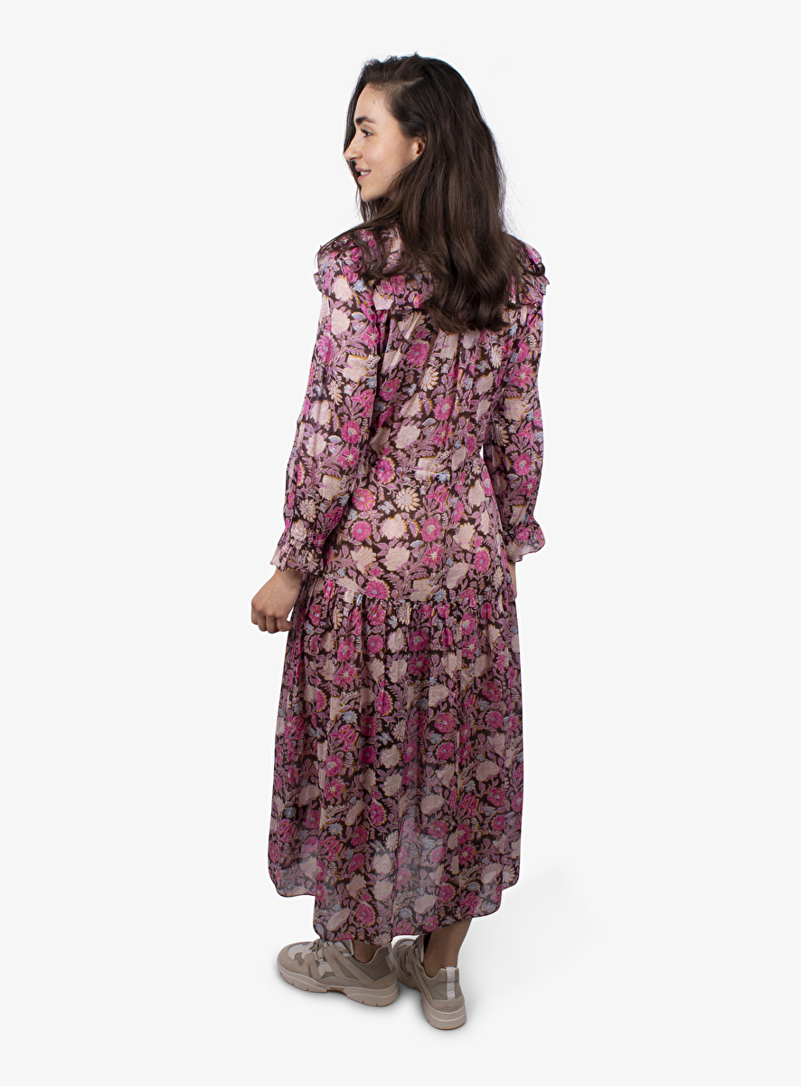 Midi jurk van luchtig katoen met een klein volant randje aan de kraag, schouders, manchetten en onderkant.