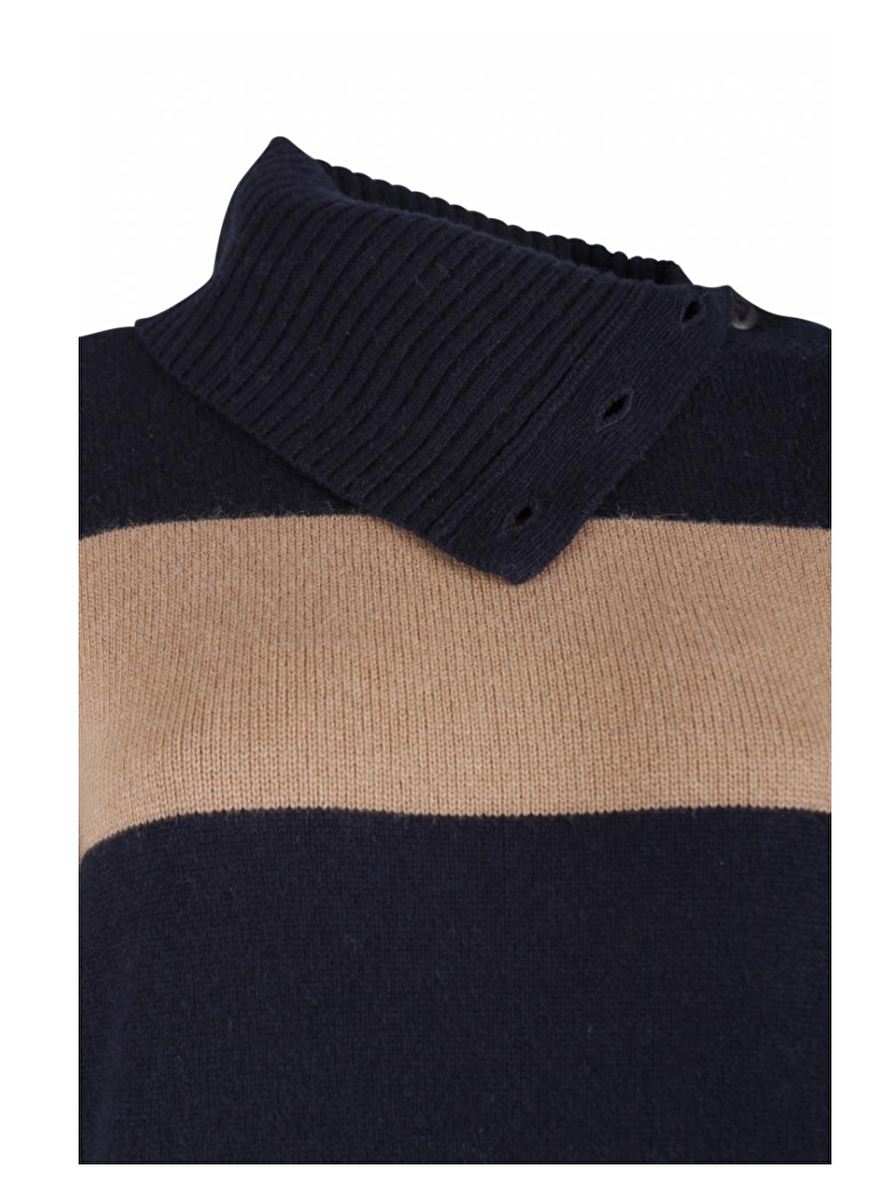 Lange jurk met variatie col. Deze kan open aan de zijkant met zes knopen op de hals en schouder. Split aan de zijkant 31cm.