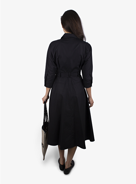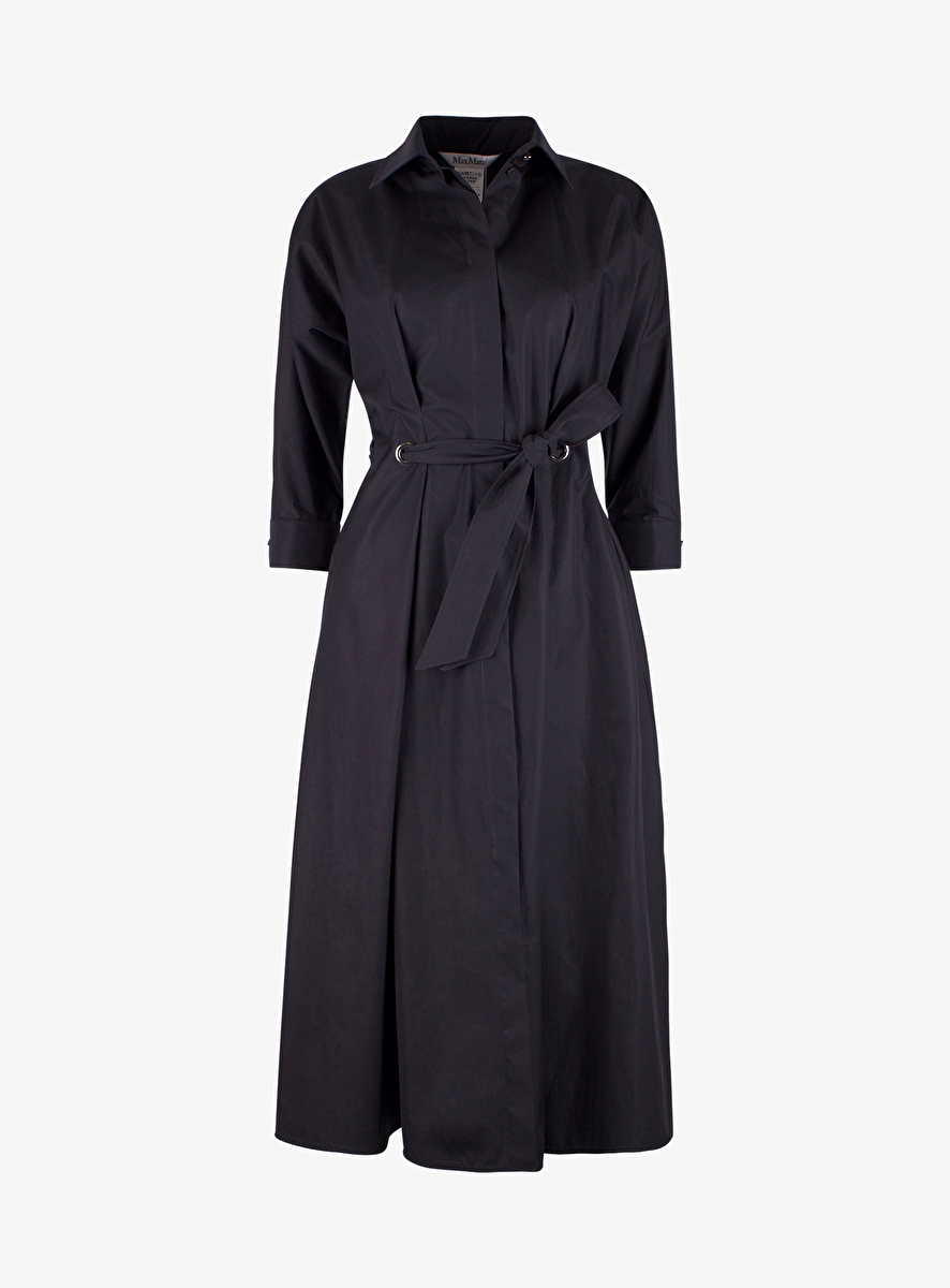 - Detail: blouse jurk met rever en blinde knoopsluiting - taille strik - smoked zilverkleurig metaal - stoffen ceintuur - steekzakken.