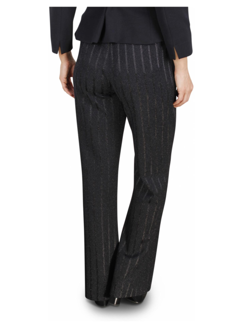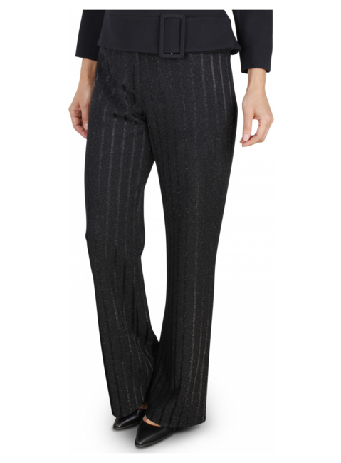 Broek in streep metallic structuur met lichte sparkling. Lussen in de taille.