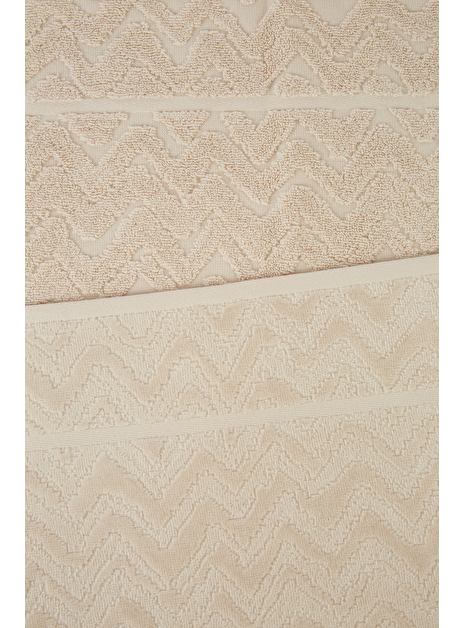 Handdoek badstofvelours met chevronmotief in 3D-effect. Een zijde van de handdoek heeft zachte velours en de andere zijde absorberende badstof.