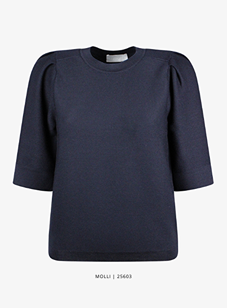 Om warmte toe te voegen zonder in te boeten op stijl, is een goede tussenlaag essentieel. Een fijngebreid vest of een kasjmieren trui in een neutrale of warme tint biedt de perfecte balans tussen comfort en luxe. Draag een oversized vest losjes over je blouse of kies voor een aansluitende trui met een mooie halslijn om je outfit verfijnd af te werken. Een prachtig voorbeeld hiervan is de Molli Pull Maille Marine, een elegante trui met subtiele pofmouwen die zowel warmte als stijl toevoegt.