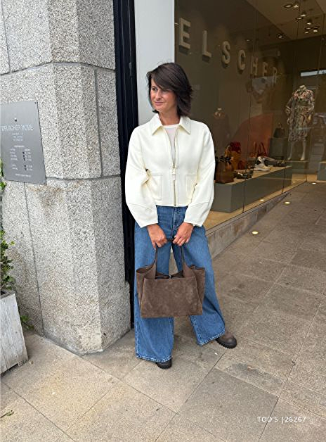 Market totes en ruime shopper vormen zijn terug, perfect om alles wat je nodig hebt op een warme dag mee te nemen. Zonnebril, flesje water, boek en misschien zelfs een strandhanddoek. De shopper van TOD'S in suede bruin is met zijn 5 vakjes waarvan 2 met een rits perfect om al jouw zomerse essentials geordend mee te nemen.