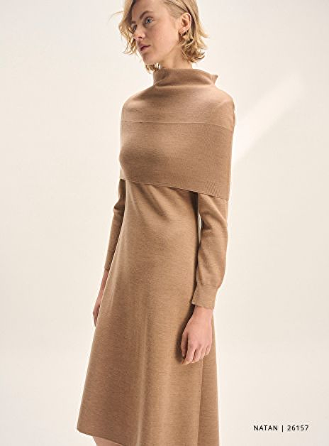 Deze elegante Natan jurk Melody in zachte merinowol straalt tijdloze klasse uit. De warme camel tint en verfijnde belijning maken dit een veelzijdig stuk dat je moeiteloos draagt naar zowel zakelijke als feestelijke gelegenheden.