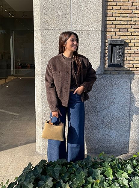 In materialen zoals wol, suède of leer komt deze kleur extra mooi tot zijn recht, neem een voorbeeld aan onderstaande bomber van flausch. Combineer met Soft Alabaster voor een rustige basis of met Sage Green en Deep Horizon Blue voor een moderne, gelaagde look.