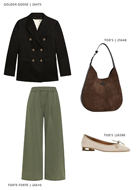 Een blazer of Lily bag in Sage Green vormt een stijlvol alternatief voor beige of grijs. In combinatie met Cloud Dancer of Cacao Brown ontstaat een uitgebalanceerde look die elegant en modern aanvoelt. Ook in jurken, rokken en knitwear zorgen deze tinten voor een verfijnde uitstraling.