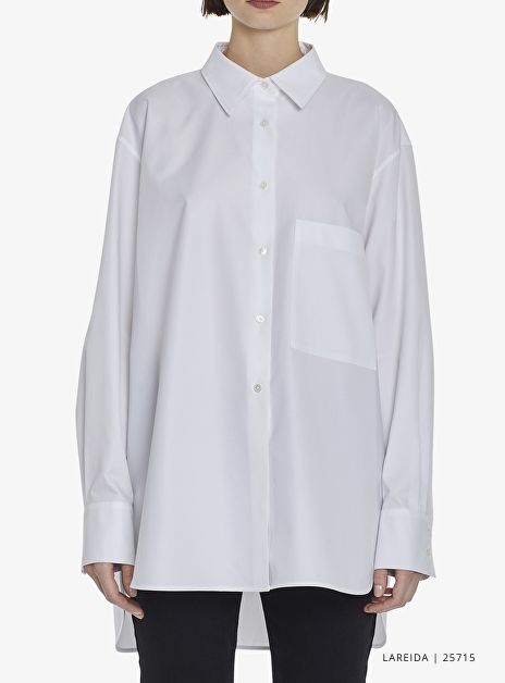 Combineer met de oversized witte Gatsby-blouse van Lareida voor een frisse, architectonische look en maak de look verder af op de zwarte Hogan Cool-sneakers met crocoprint-accent.