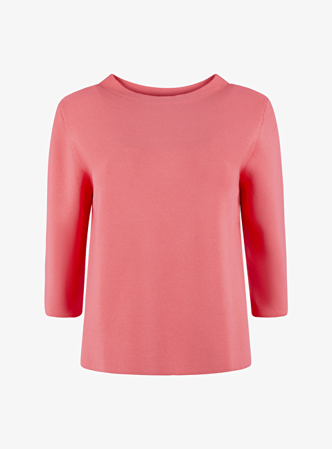 Detail: opstaande boothals - driekwart mouwen - splitjes 10 cm aan beide zijkanten.
