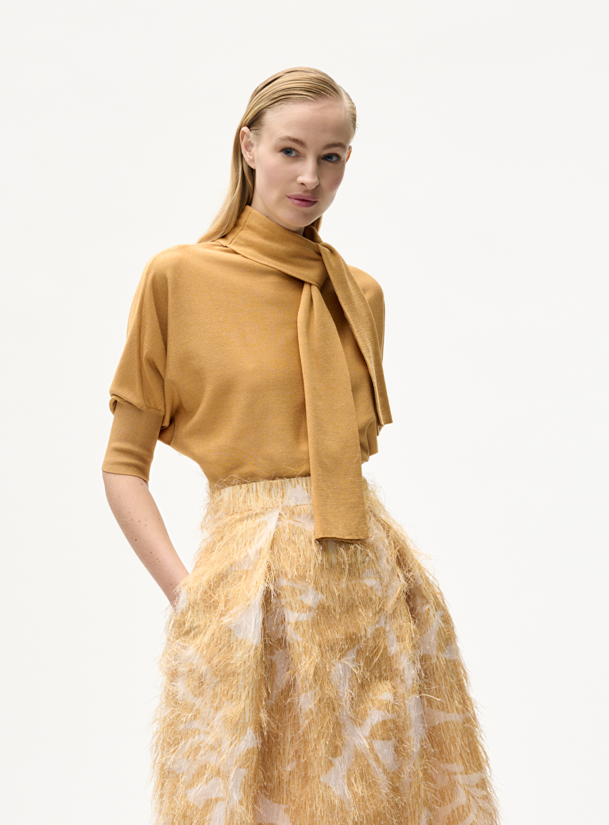 Pull nougat met shawl kraag geel