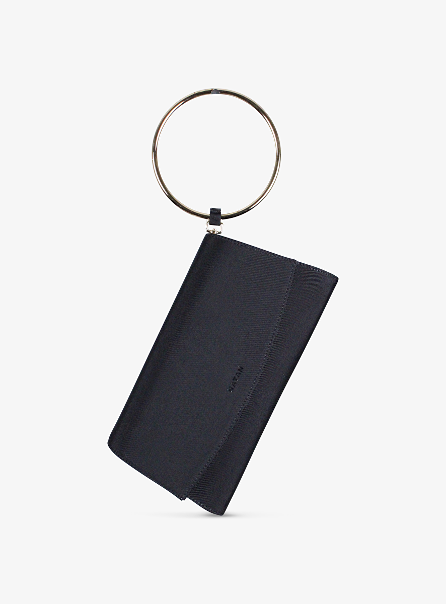 Tas clutch scuba zwart met gouden ring