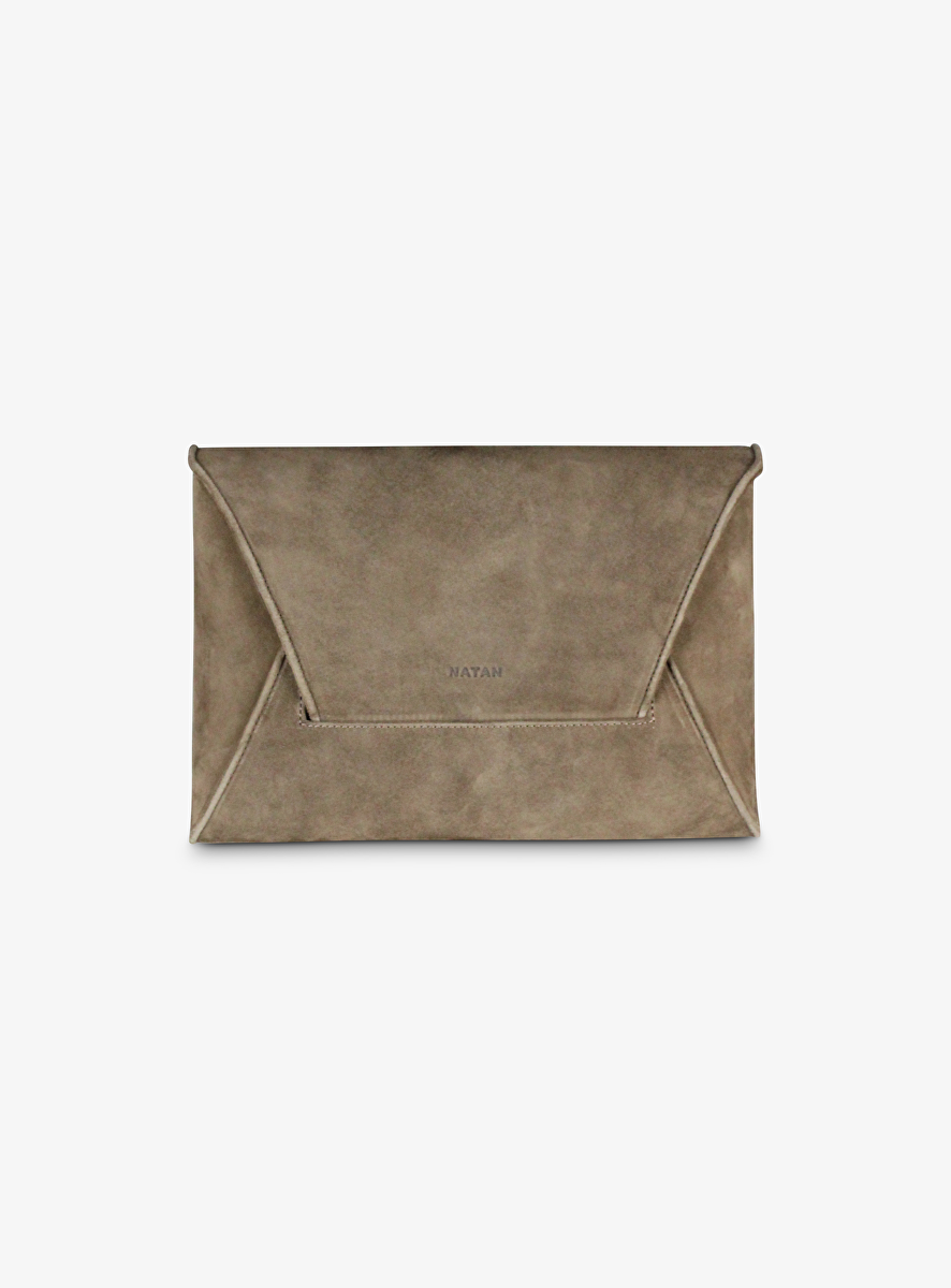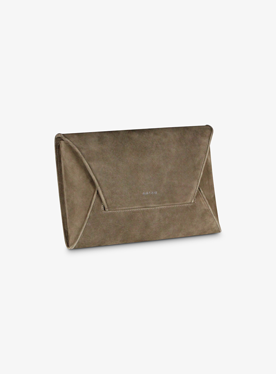 Tas envelop clutch suede olijfgroen