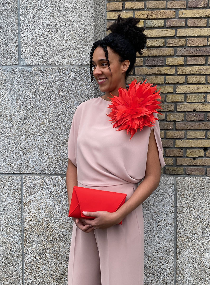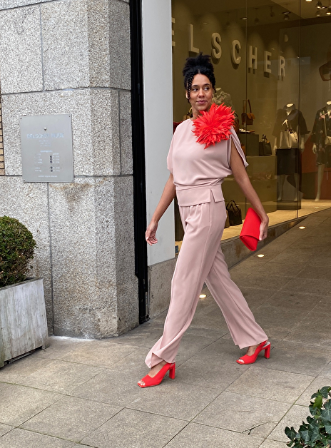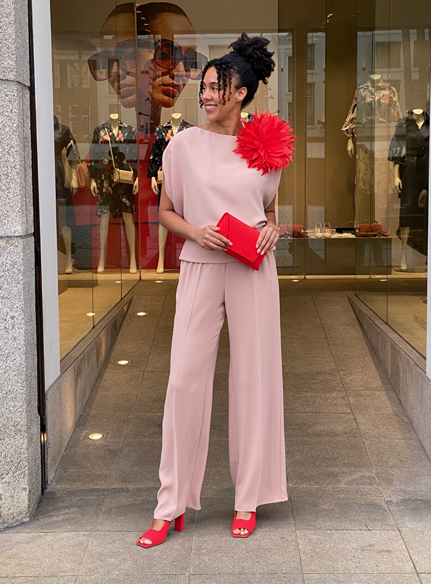 Combineer deze top met de classy pantalon Carla en er ontstaat een prachtige jumpsuit. Combineer dit met de pumps en clutch van Natan, een mooie broche en de outfit is volmaakt.