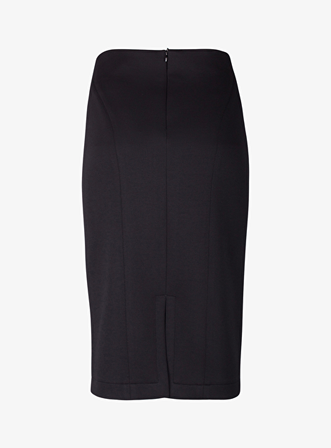 Detail: lichte diagonale structuur - knoopje, lusje en rits aan de achterkant - split 20 cm.