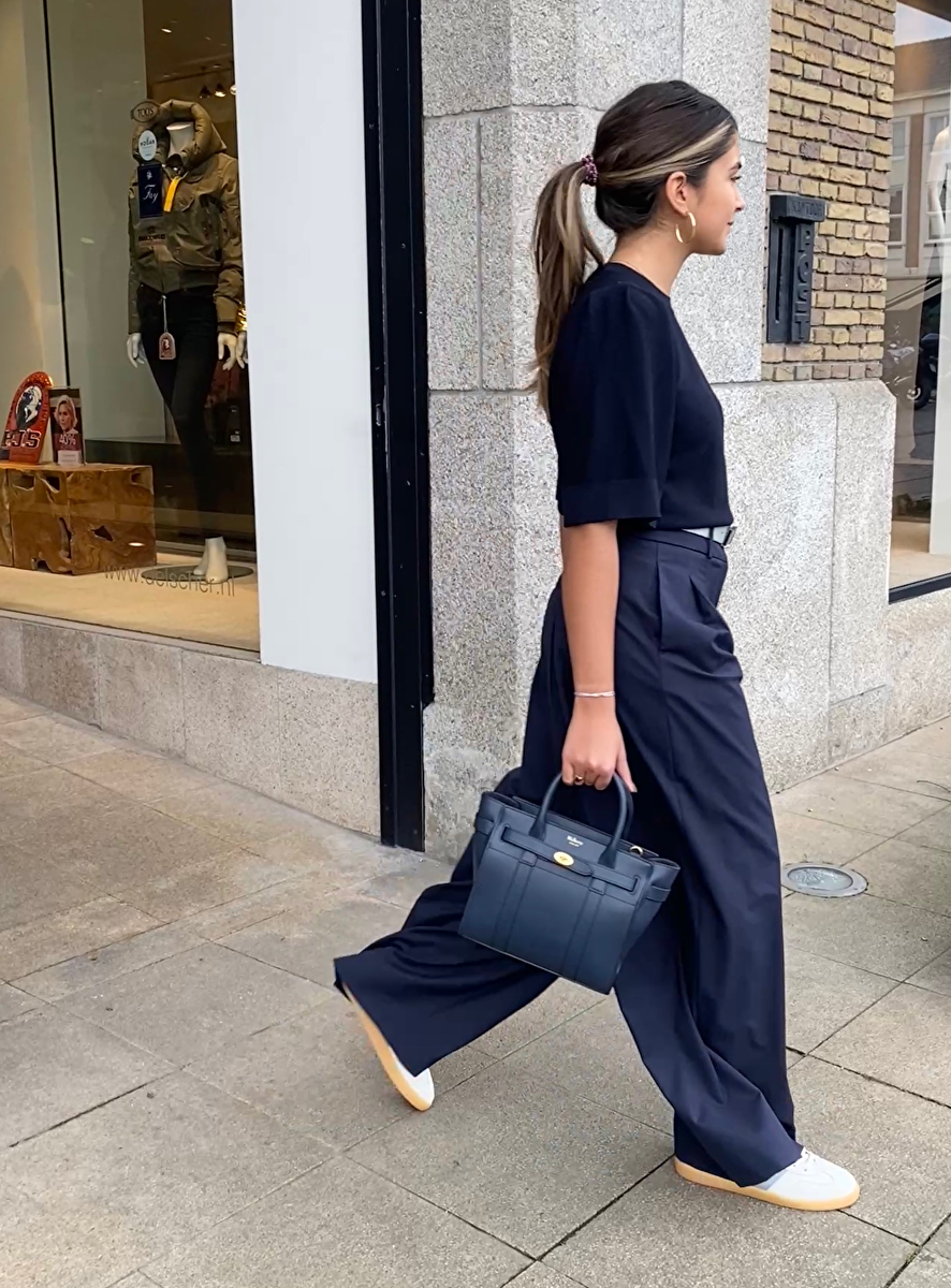 Pantalon bandplooi marine wijd