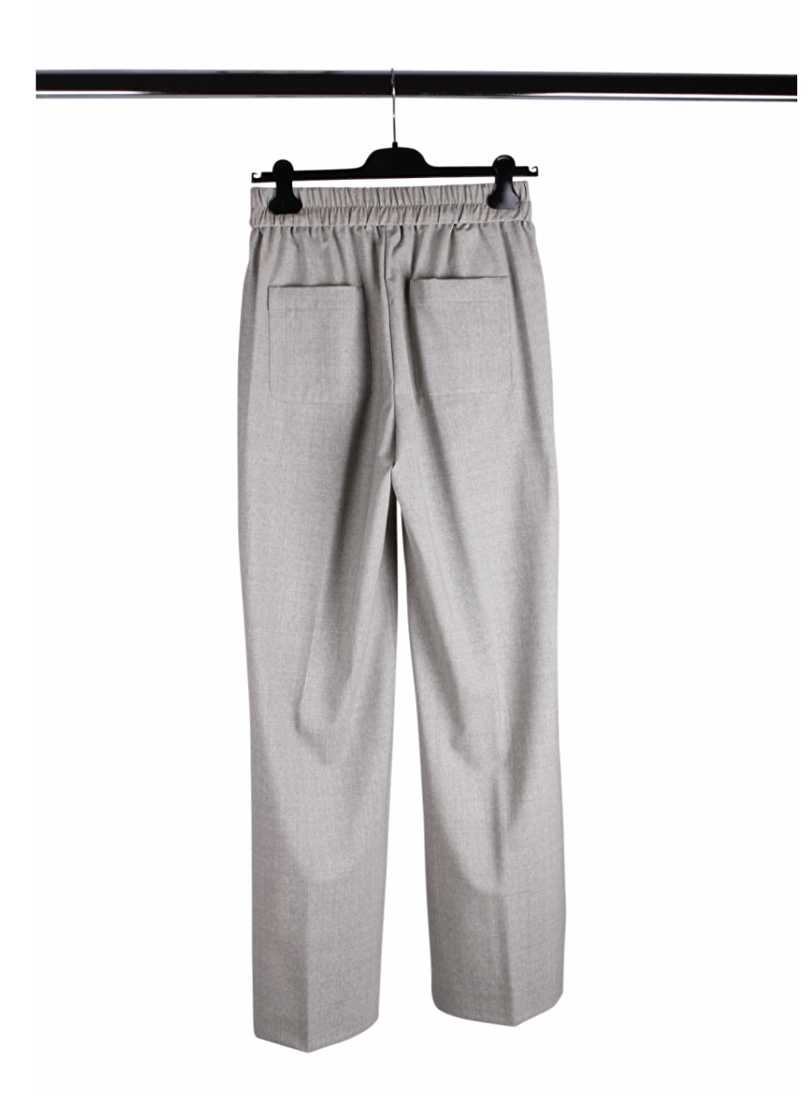 Coolwool melange pantalon met elastische taille. Aantrek lint poederroze met metalen stiften zilverkleurig. Steekzakken. Zakken achterkant. Rechte breede broekspijpen.