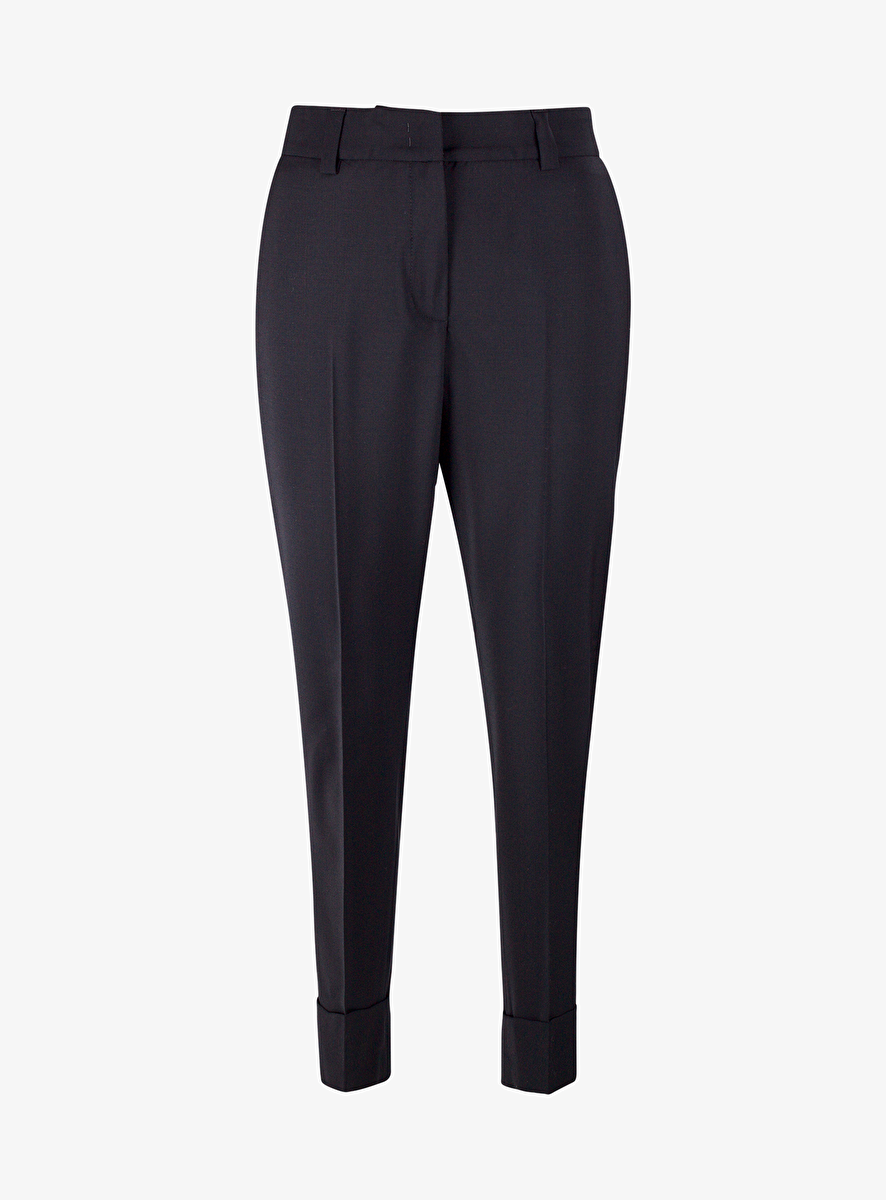 Detail: broek met elastische inzet aan de achterkant en blinde zakken - omslag aan de onderkant broekspijpen.