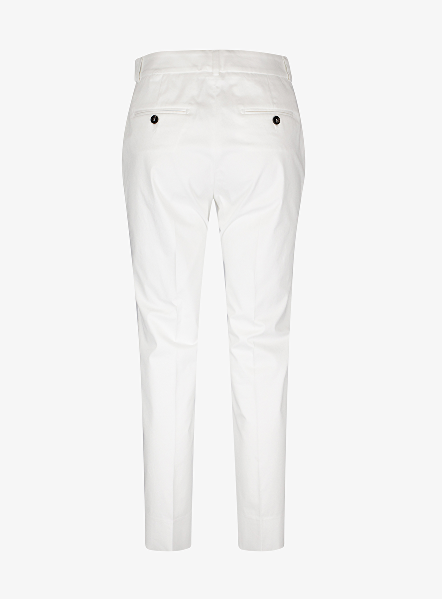 Detail: ceintuurlussen - ritssluiting en haakjes - steekzakken - witte zadelsteek details - persvouw - fake paspelzakken met knoopje aan de achterkant.