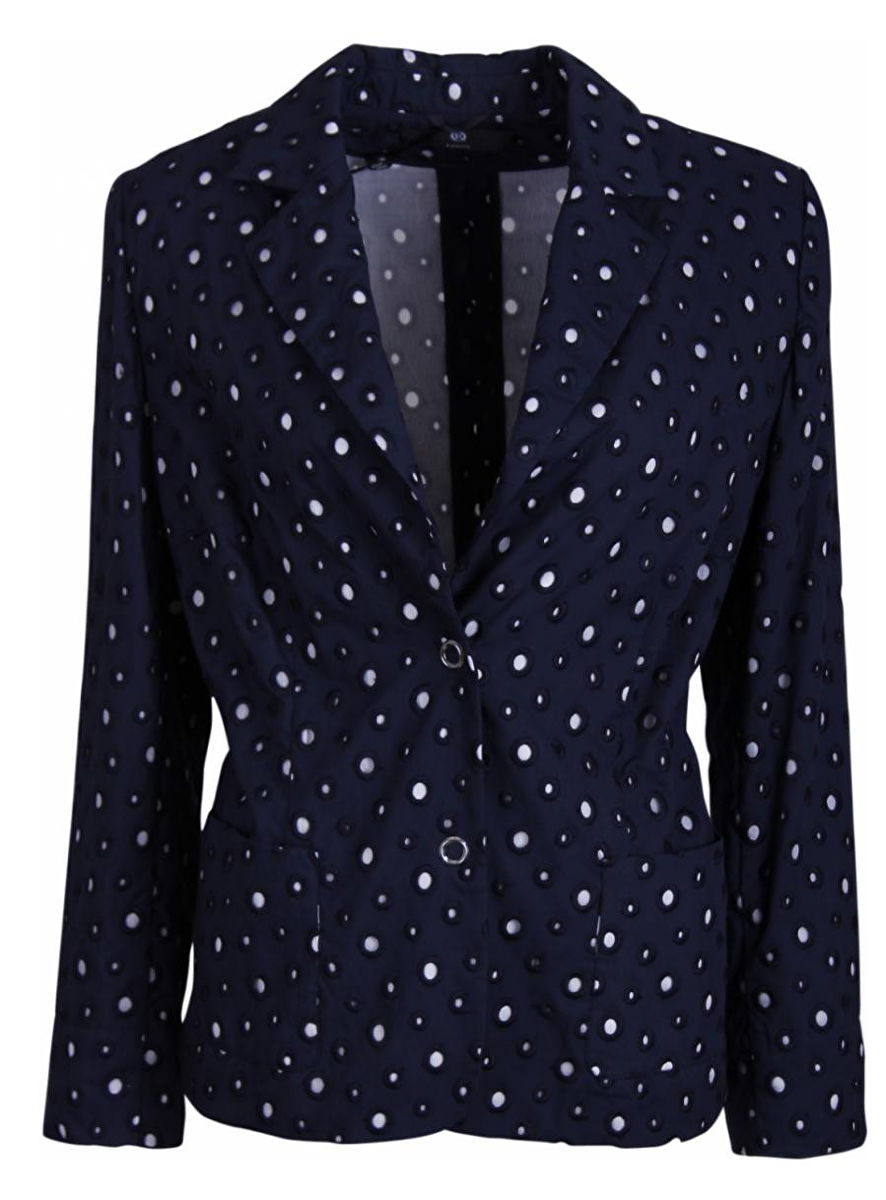 Blazer met broderie cirkels en offwhite voering. Drukknopen met zilver detail. Zakken.