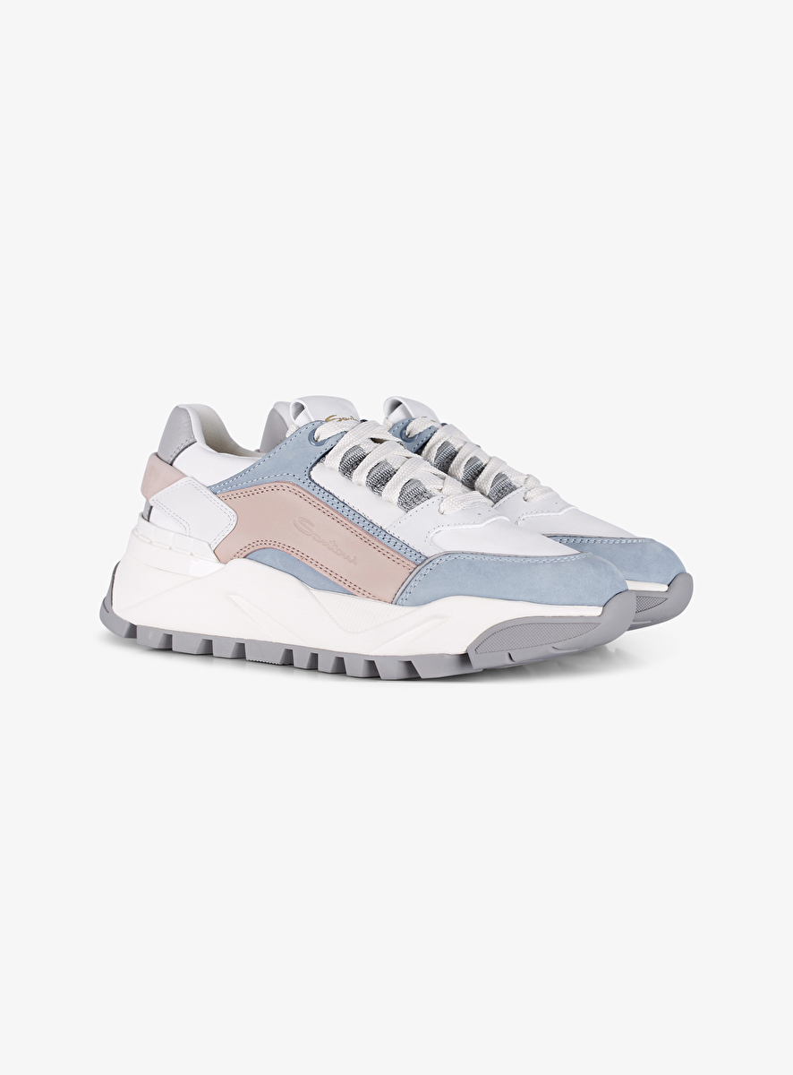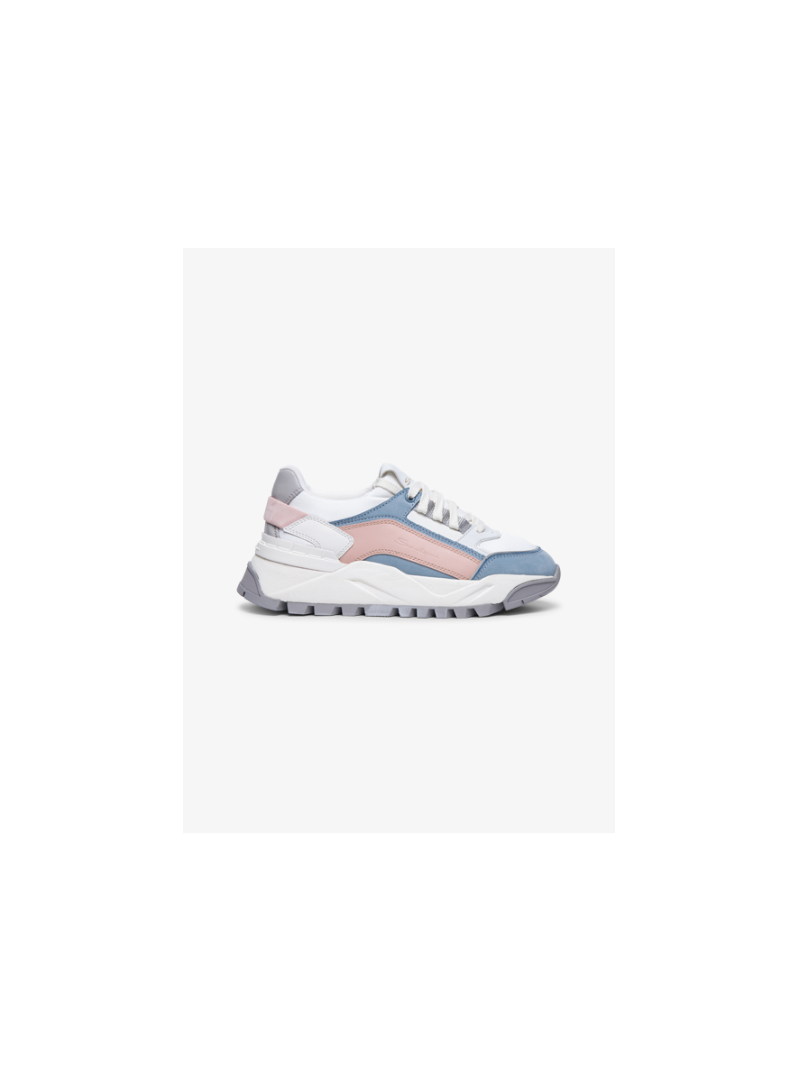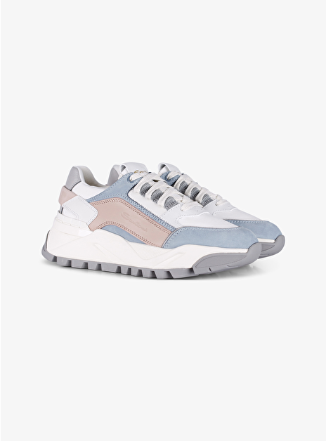 • Detail: sneaker in wit en zacht blauw en nude - merk, logo gestanst op de zijkant en achterkant hiel.