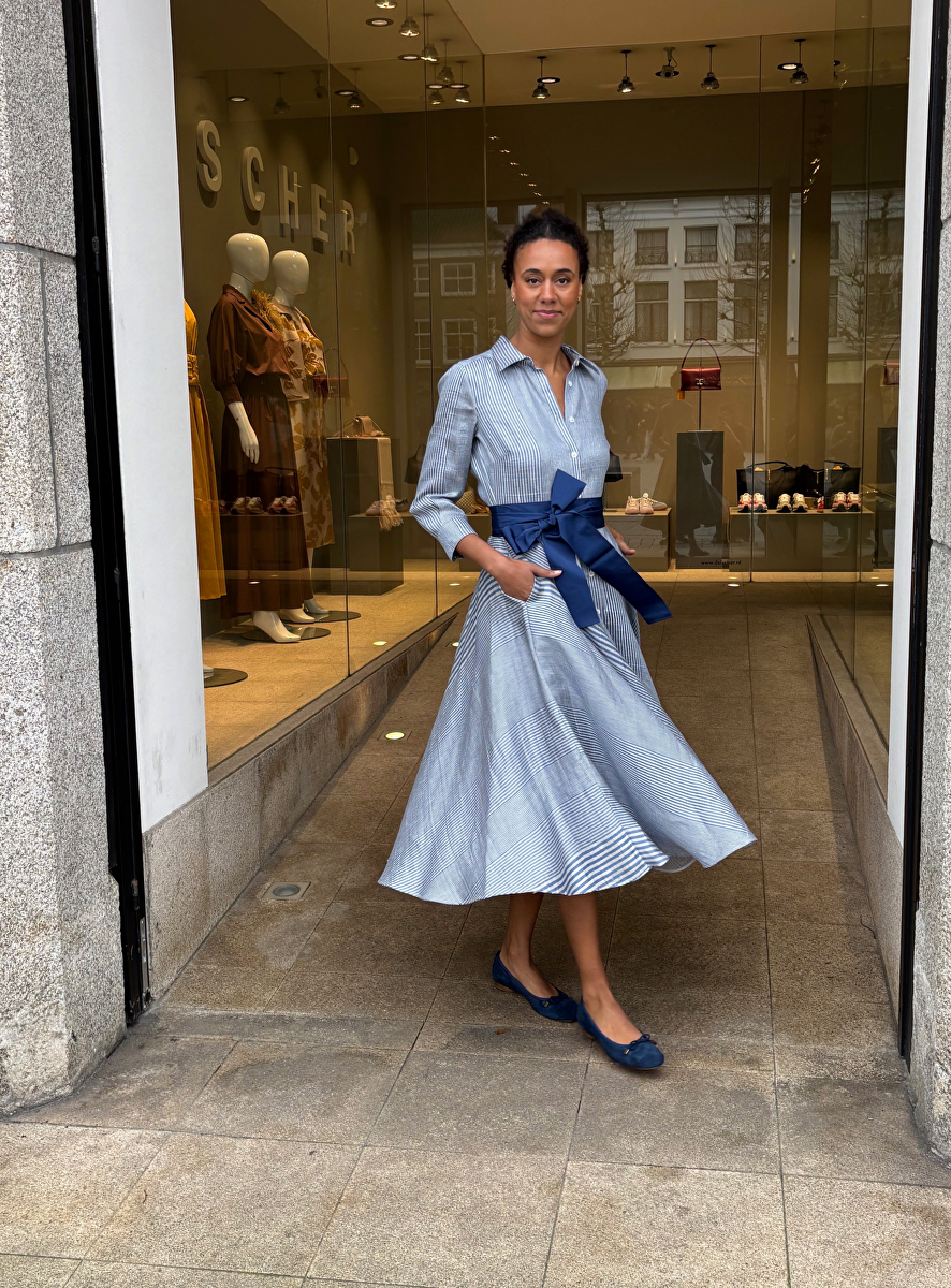 Jurk danette 85 linnen blauw wit streep