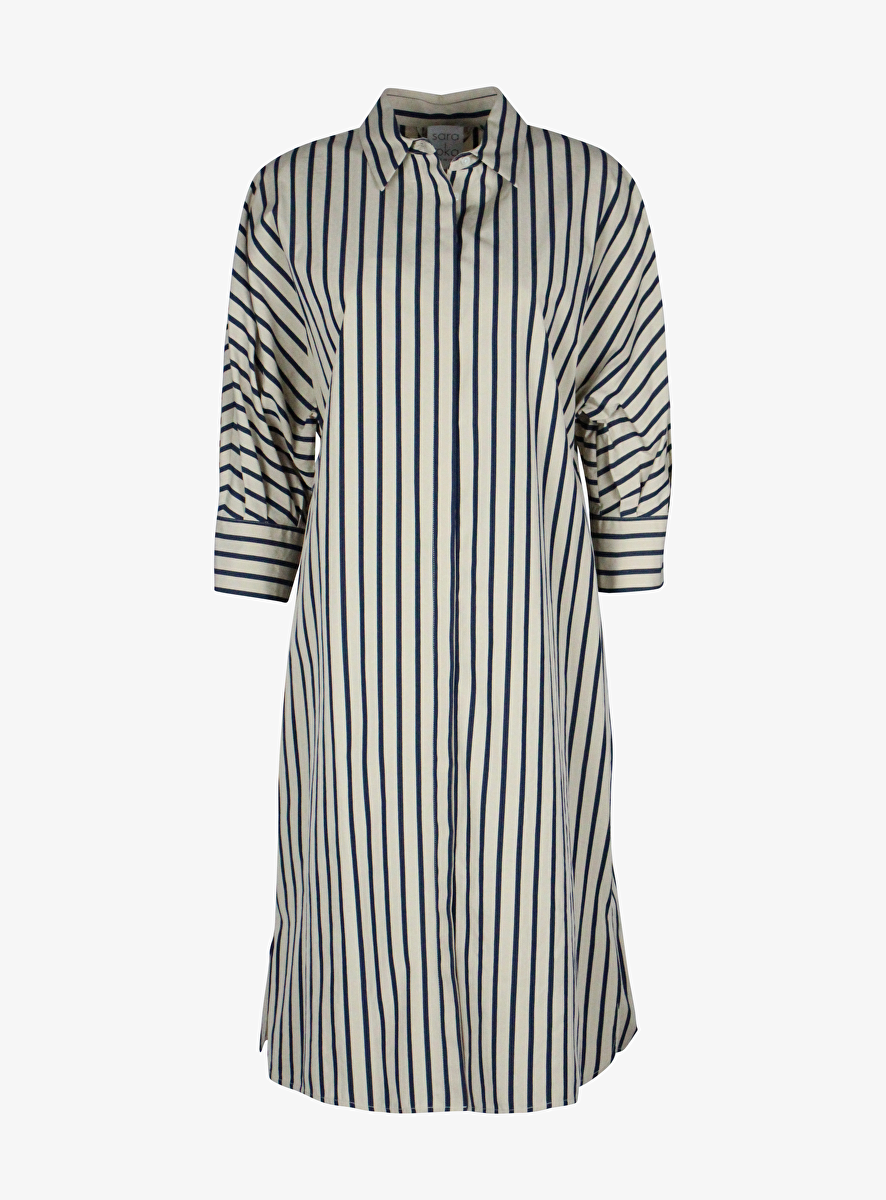 Jurk petra beige blauwe streep