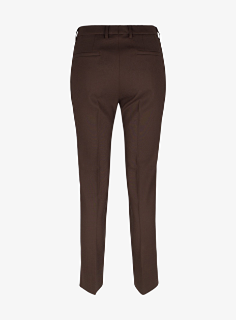 Detail: luchtig geweven - steekzakken - blinde zakken aan de achterkant - haakje, knoop, rits - splitjes onderkant zoom - persvouw.