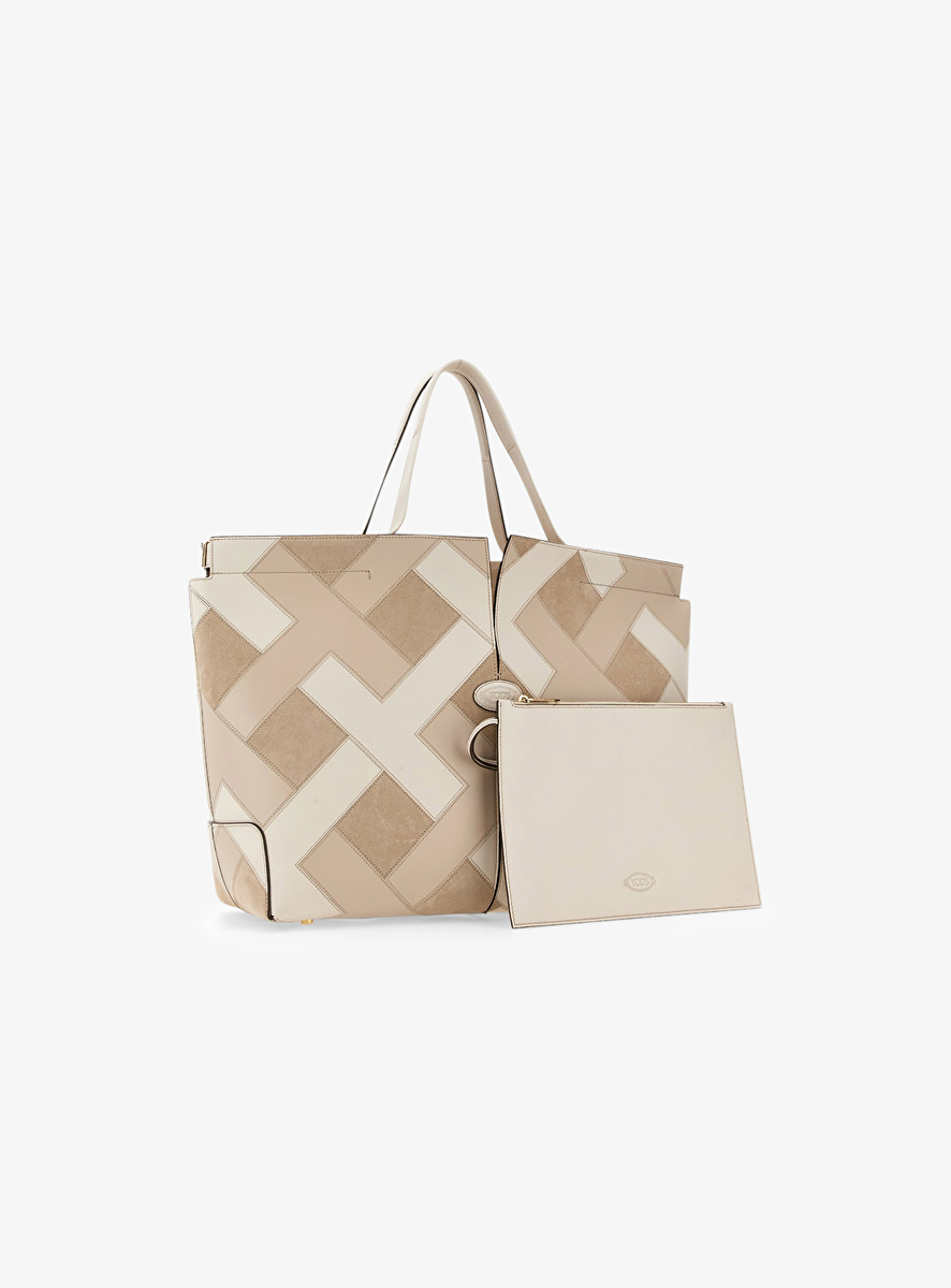 di bag folio shopper medium beige off white suede leder