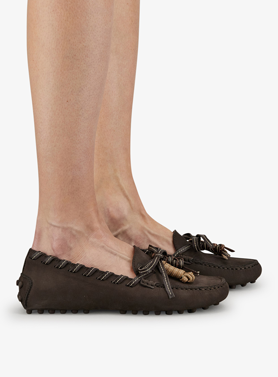 Mocassin bruin nubuck met kwastjes