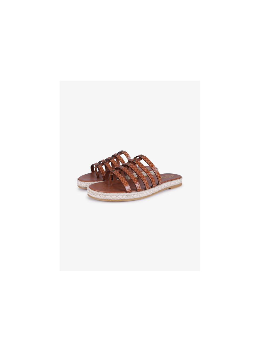 enkelveters - leren binnenzool - rubberen buitenzool met raffia-randen - snake print.