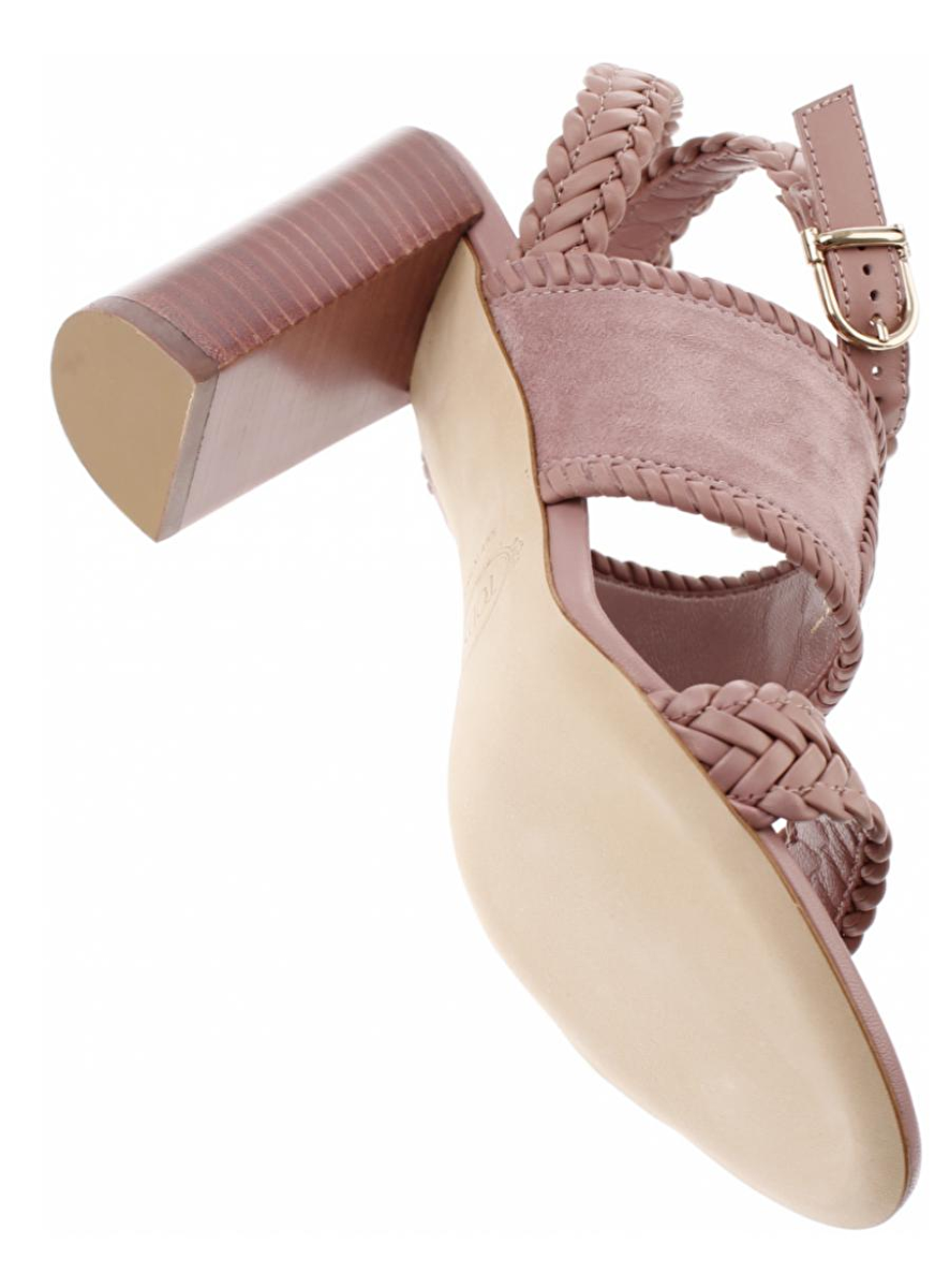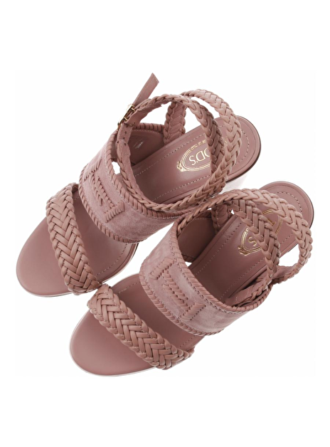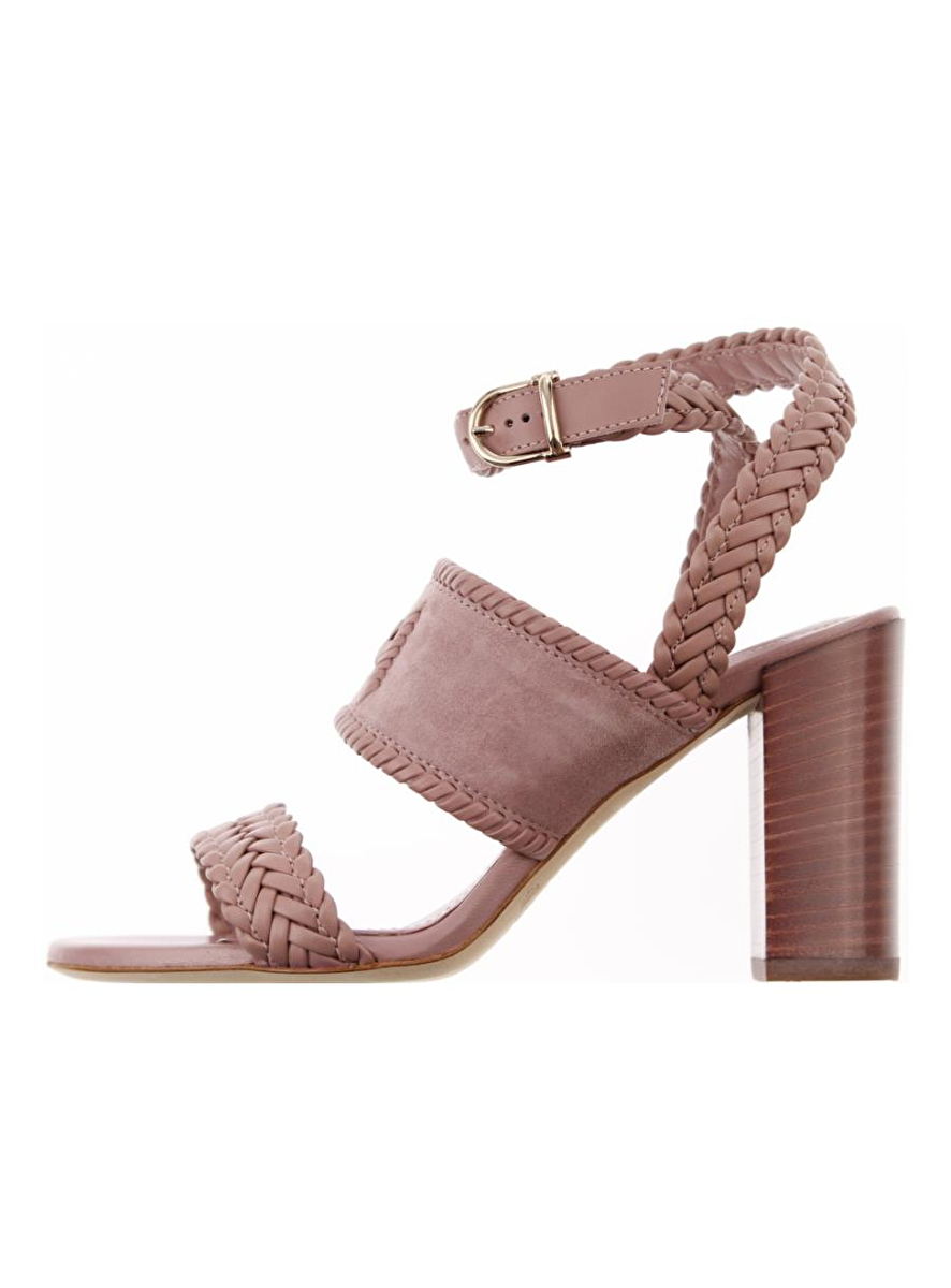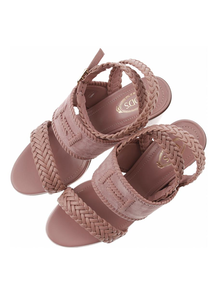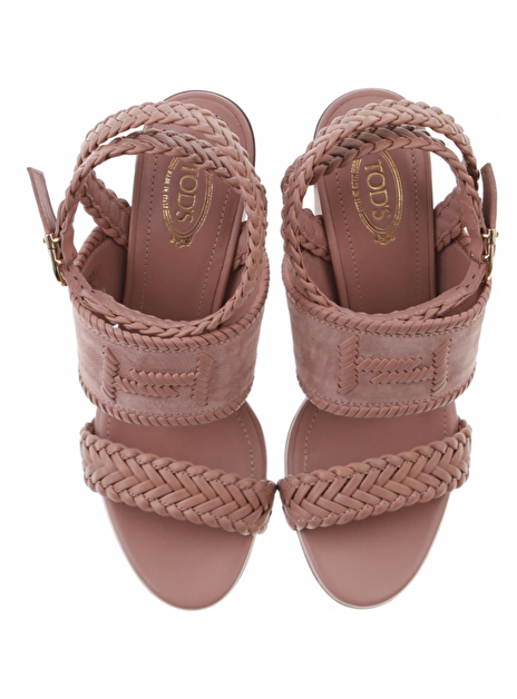 Sandalette in nude suede en gevlochten leder uitgevoerd. Double T gevlochten op de wreef. Hakhoogte 10cm.