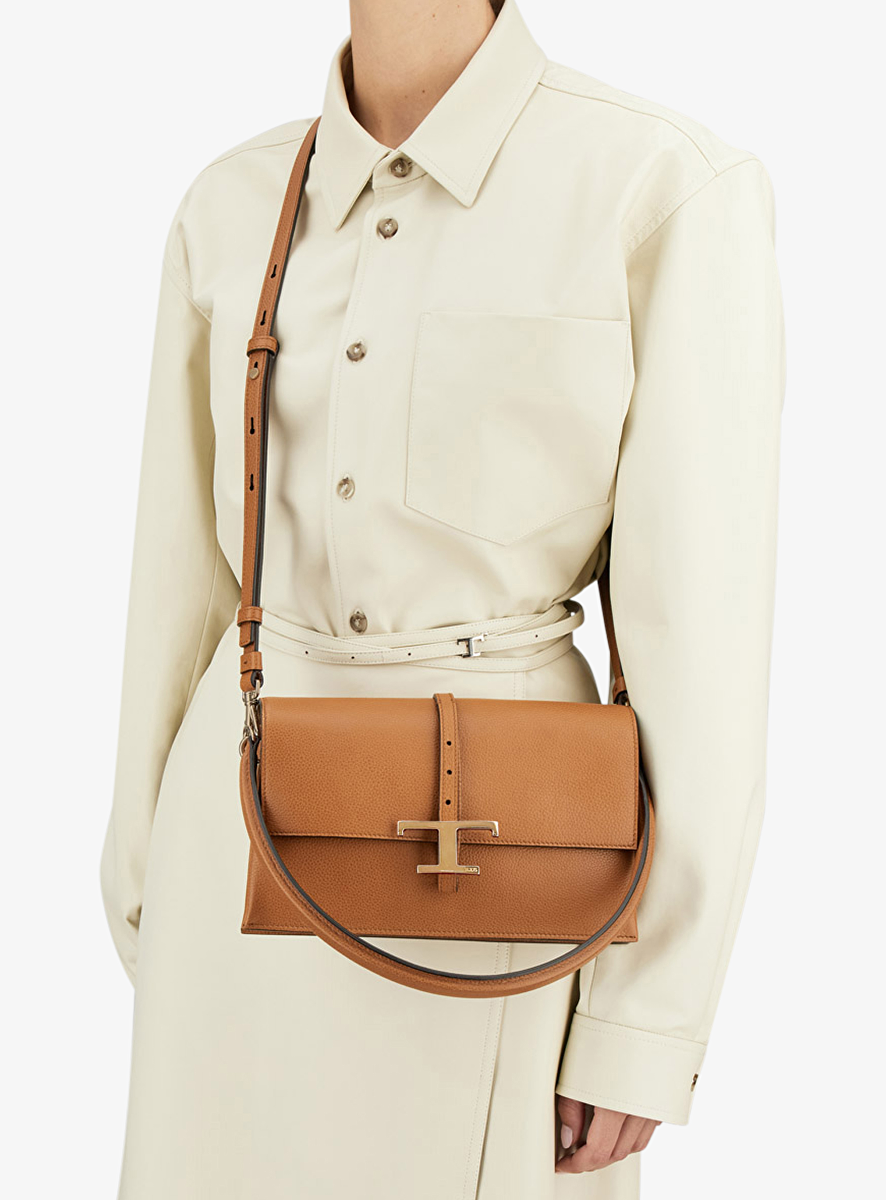 Schoudertas cognac T timeless mini