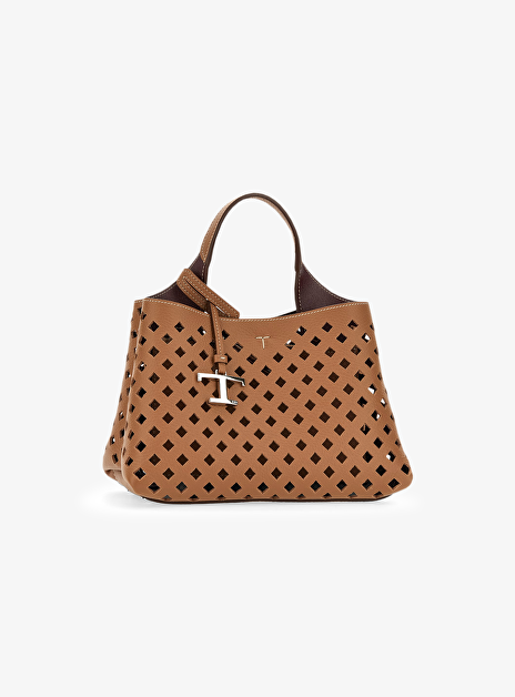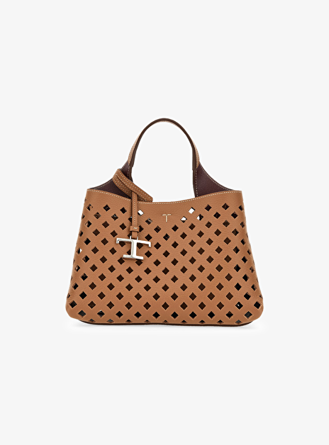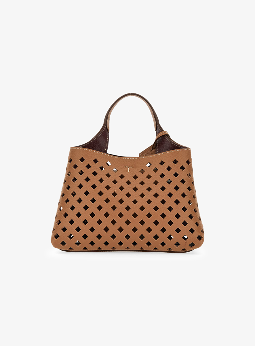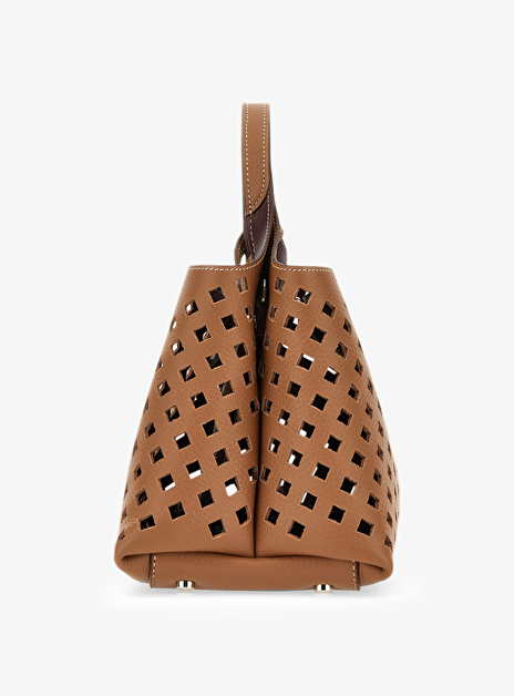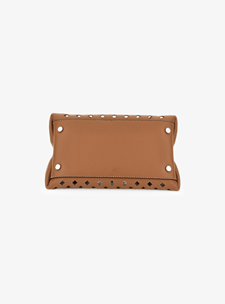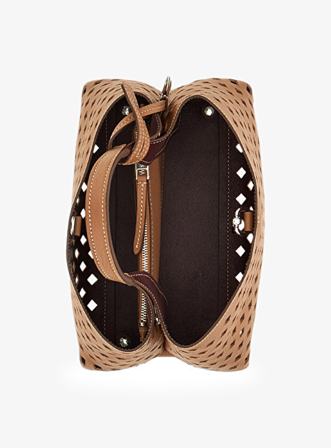 Tas mini cognac leder met gaatjes