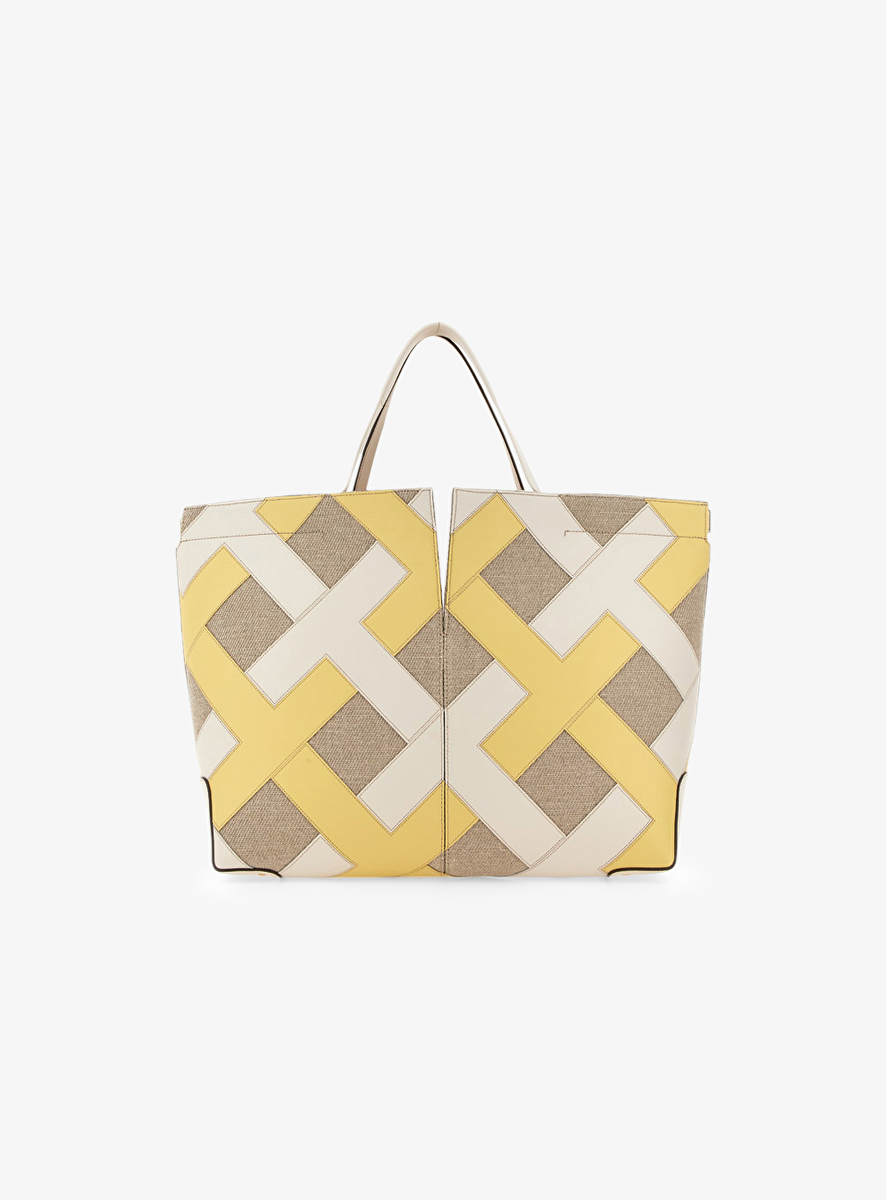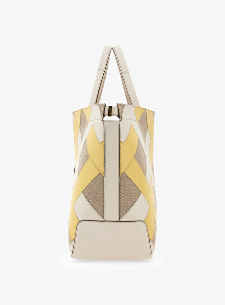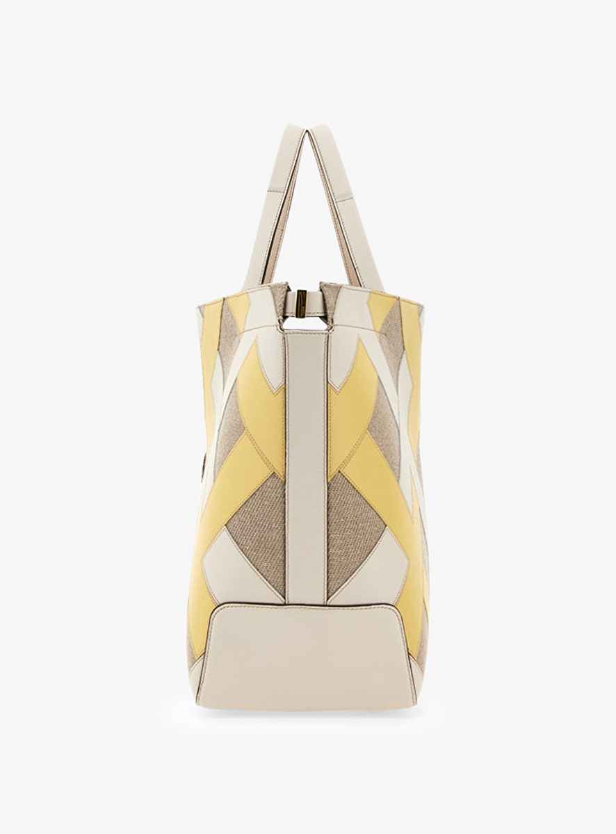 Tas shopper beige creme en lichtgeel leder suede vlakken