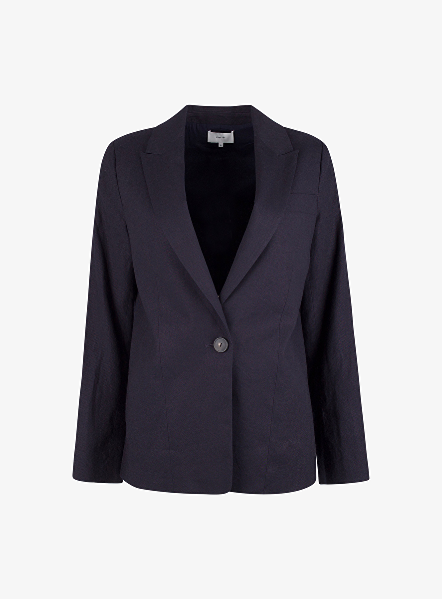 - Detail: losvallende blazer in linnenmenging - steekzakken - paspelzakje op de borst - 1 knoopsluiting - 3 knoopjes op de mouw - diepe rever.