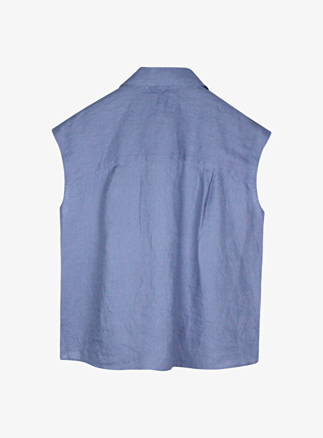Blouse linnen met kapmouwtje jeans blauw
