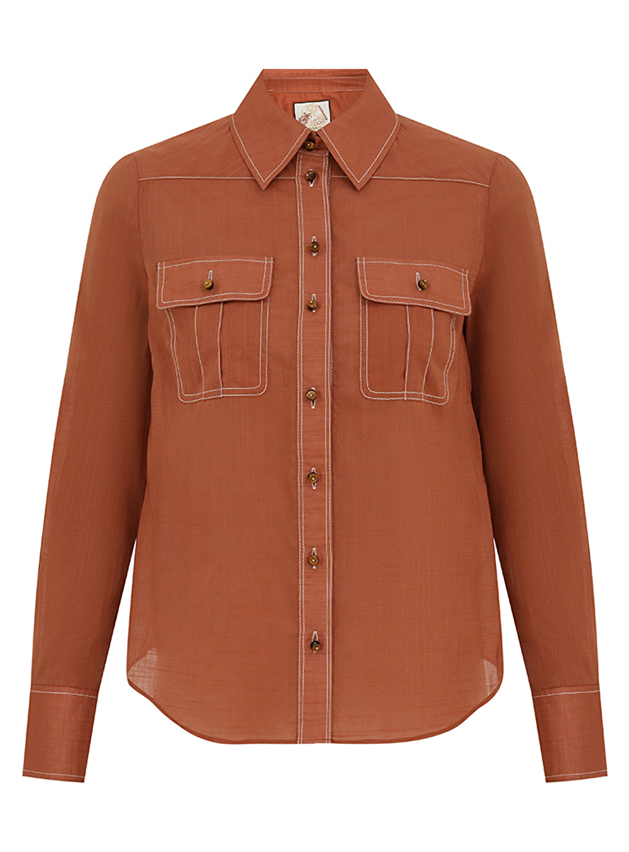 Blouse lange mouw awaken roestbruin