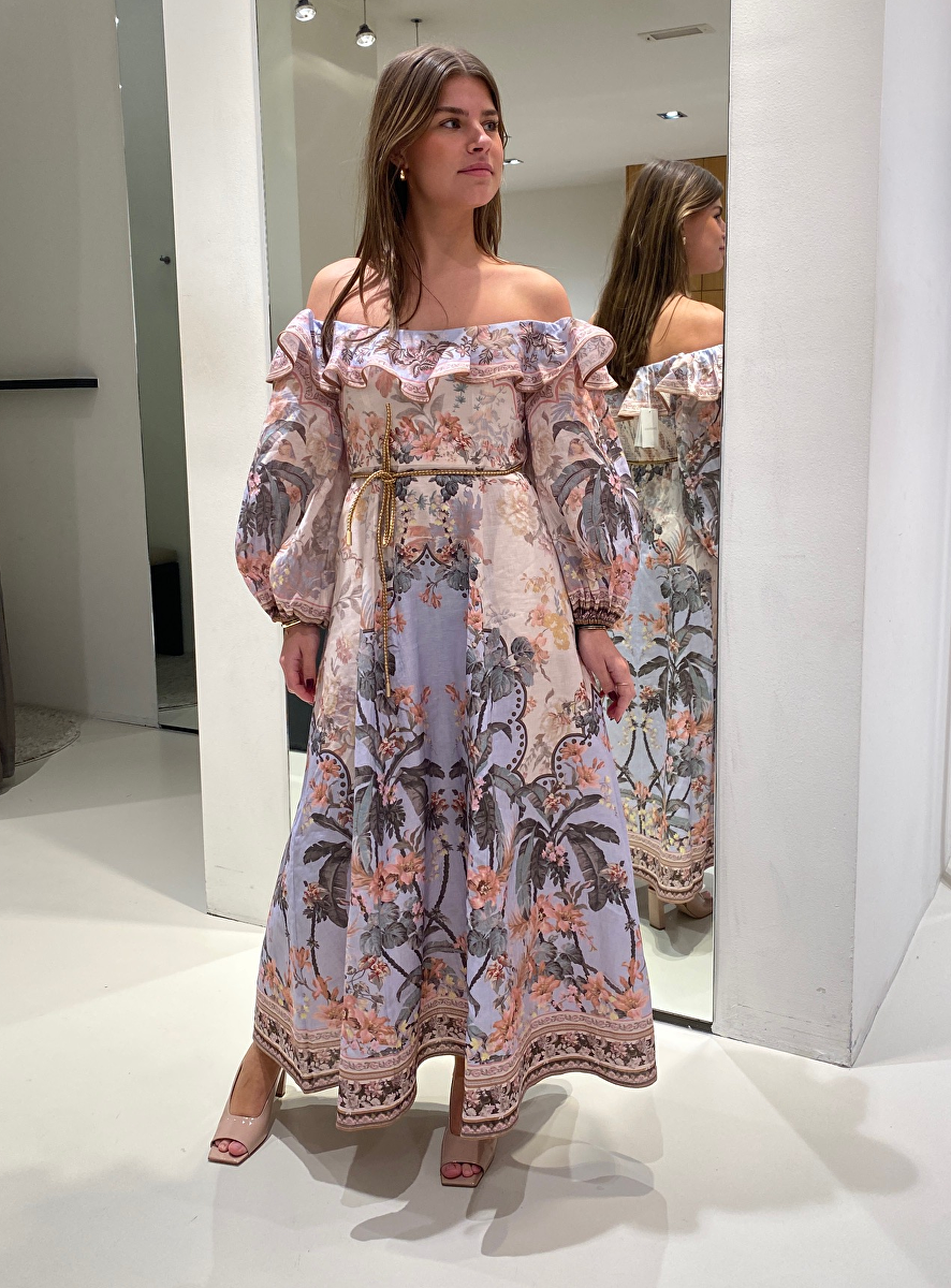 Jurk wylie offshoulder poeder blauw roze